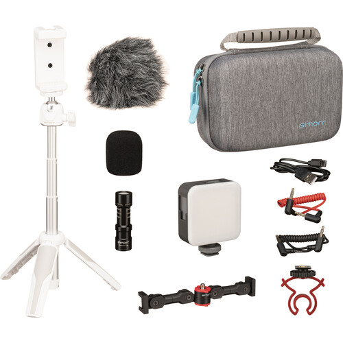 simorr Vigor VK-50 White Vlog Kit 3752. Súprava sa skladá z prenosného statívu pre vlogy, štandardného klipu na telefón, mikrofónu Wave S1 lite, svetla Vibe P96, predlžovacej tyče s dual-cold-shoe a úložného puzdra, je kompaktná a určená na pouličné natáčanie. Statív a klip na mobilný telefón využívajú 1/4 skrutkové pripojenie, klip na mobilný telefón a svetlo LED prinášajú množstvo úchytov cold shoe, môžu voľne rozšíriť ďalšie vybavenie. Veľkosť statívu 16 cm, bezpečné zaťaženie 1,5 kg.