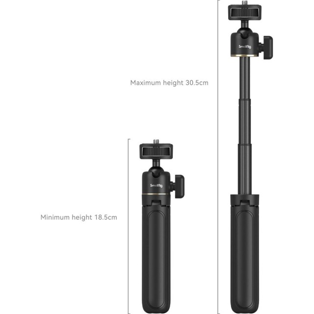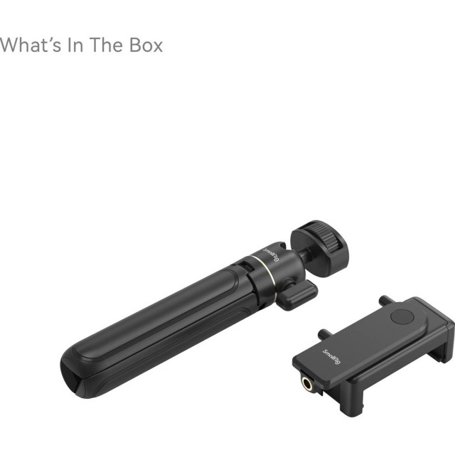 SmallRig Smartphone Vlog Tripod Kit VK-20 Advanced Version 4364 sa skladá zo stolového teleskopického statívu a držiaka na smartfón. Táto kompaktná a prenosná súprava má pôsobivú nosnosť 1,5 kg / 3,3 lb. Jednou skrutkou 1/4"-20 sa statív pripevňuje k držiaku smartfónu, ktorý má dva úchyty cold shoe na mikrofón, LED video svetlo atď. Držiak je vybavený jedinečnou ľahko vysúvateľnou konštrukciou na rýchle upevnenie a odstránenie smartfónu. Otočenie rukoväte o 360 stupňov umožňuje bezpečné a rýchle prepínanie medzi orientáciou na výšku a na šírku, zatiaľ čo dva úchyty cold shoe umožňujú pripevnenie kompatibilného príslušenstva.