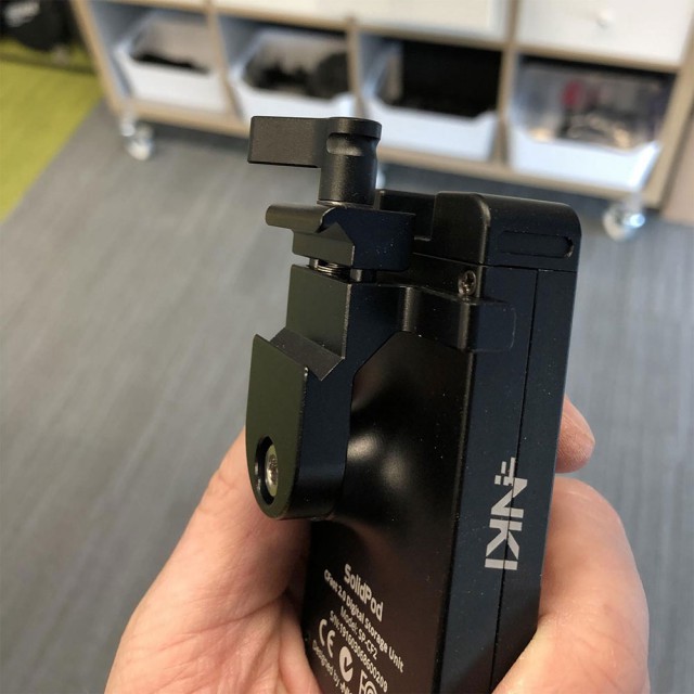 Potom môžete jednotku rýchlo odpojiť pomocou držiaka nato. Vďaka tomu je vykladanie záberov zo zariadenia SolidPod oveľa jednoduchšie. Držiak tiež poskytuje funkcie proti otáčaniu, takže nemusíte držiak neustále uťahovať alebo meniť jeho polohu, ako je to v prípade štandardných montážnych riešení SolidPod. Ide o skvelé, ľahké riešenie, ktoré vám pomôže uľahčiť život na scéne