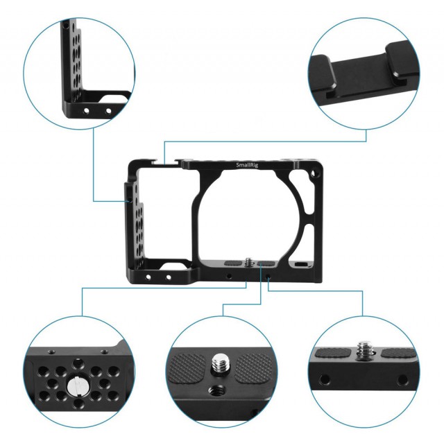 SmallRig Sony A6000/A6300/A6500 ILCE-6000/ILCE-6300/ILCE-A6500/Nex-7 Cage 1661 je hliníková klietka, ktorá chráni fotoaparát a ponúka možnosti upevnenia príslušenstva.