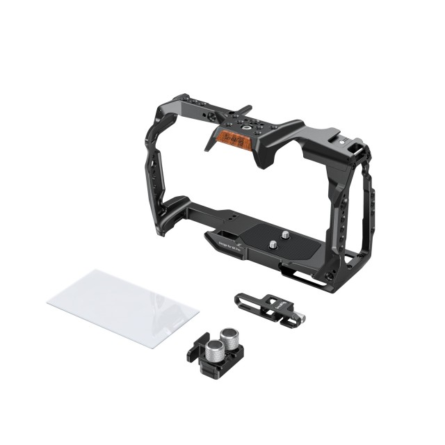 SmallRig Standard Accessory Kit pre BMPCC 6K Pro 3298 poskytuje robustnú klietku pre králika z hliníkovej zliatiny s viacerými otvormi so závitom 1/4"-20 na podporu ďalšieho príslušenstva fotoaparátu. Súprava obsahuje zabudovanú svorku pre disk SSD T5 a svorku pre kábel USB-C, ktorú možno ďalej uzamknúť pomocou gombíka, aby sa zabránilo náhodnému odpojeniu počas snímania. Jeho dve vytvrdené fólie sa dajú ľahko prilepiť na obrazovku pomocou elektrostatickej adsorpcie na ochranu fotoaparátu.