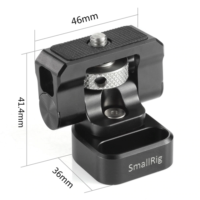 Otočný a naklápací držiak monitora SmallRig BSE2294 je určený na montáž monitora na klietku kamery, rukoväť alebo iný montážny systém pomocou dvoch skrutiek 1/4"-20. Robustný hliníkový držiak umožňuje otáčanie do strán o 360° a naklápanie o 150° bez použitia náradia. Ľahký držiak váži len 68 g a unesie 5" a 7" monitory s hmotnosťou do 1,2 kg. Na hornej strane má gumové podložky, ktoré zabraňujú poškriabaniu monitora. Skrutka s palcom má otvory so šesťhranným kľúčom na opätovné utiahnutie skrutky, aby bol váš monitor v bezpečí. Keď držiak nepoužívate, môžete ho jednoducho zložiť a uložiť.