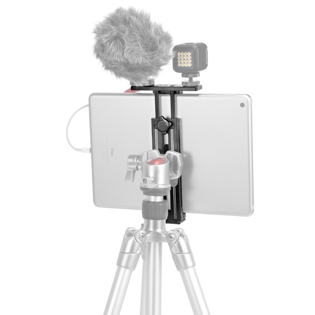 Držiak na tablety SmallRig pre iPad uľahčuje pripevnenie iPadu alebo tabletu. Je kompatibilný s iPadmi od 7,9 palca do 12,9 palca alebo inými tabletmi podobnej veľkosti, s ochranným puzdrom alebo bez neho. Vstavané gumené podložky zabránia poškriabaniu iPadu. Dodáva sa s podstavcom Arca-Swiss so závitom 1/4 na rýchle pripevnenie / demontáž statívu, s ľahkou váhou 184g.