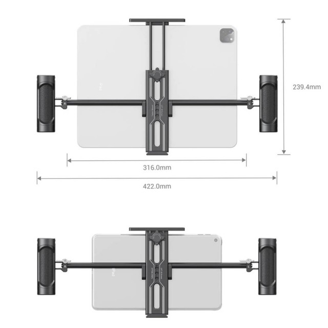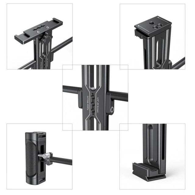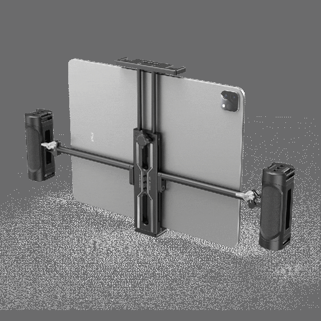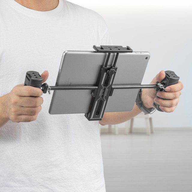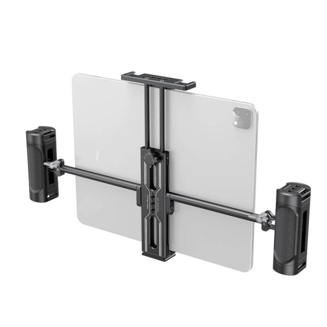 Držiak na tablet SmallRig s rukoväťami. Vhodný pre tablety od 7,9 ”do 12,9”, aby mohol byť tablet použitý ako riadiaci monitor alebo réžia. Obsahuje dve odnímateľné rukoväte, ktoré sú voľne nastaviteľné pre pohodlnejšie použitie v ruke. Možnosti viacerých upevnení.