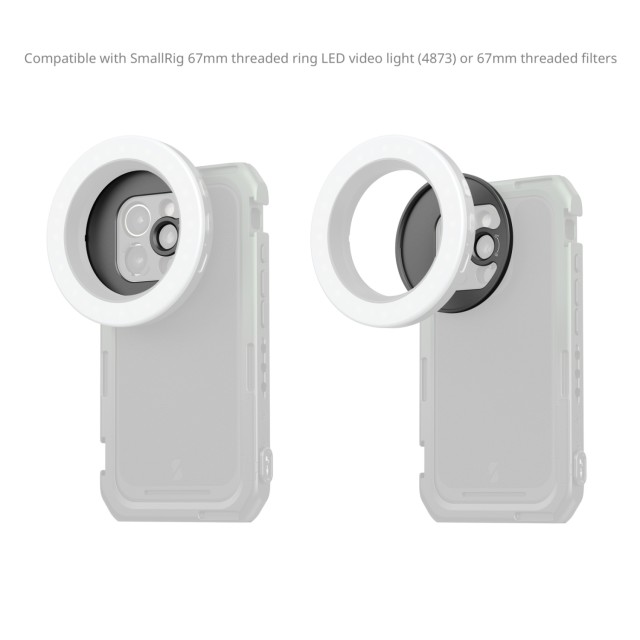 Adaptér SmallRig na 67 mm závitové filtre T-Mount 5172 umožňuje jednoduché upevnenie 67 mm závitových filtrov alebo 67 mm závitových krúžkových LED videosvetiel SmallRig (ID 4873) na klietky telefónov T-Mount alebo zadné dosky objektívov, čím účinne zabraňuje vinetácii spôsobenej stohovaním adaptérov. Spárovanie s adaptérom so závitom na magnetický filter zo súpravy filtrov umožňuje univerzálnu kompatibilitu so 67 mm magnetickými filtrami na bezproblémovú inštaláciu a výmenu filtrov.