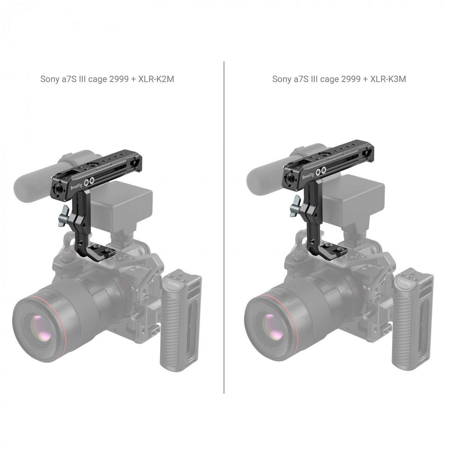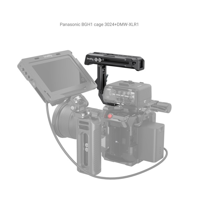 SmallRig horná rukoväť pre adaptér Sony XLR-K1M / K2M / K3M a Panasonic DMW-XLR1 3082 je určená na držanie fotoaparátu, keď je vybavený adaptérom XLR pre mikrofón, ako aj na upevnenie príslušenstva. Rukoväť je pripevnená k hornej časti klietky fotoaparátu pomocou dvoch pevných skrutiek 1/4"-20, aby sa zabránilo jej skrúteniu, a možno ju posúvať smerom nahor alebo nadol až o 25 mm pomocou gombíka, aby sa prispôsobila mikrofónnemu adaptéru XLR s rôznou výškou.