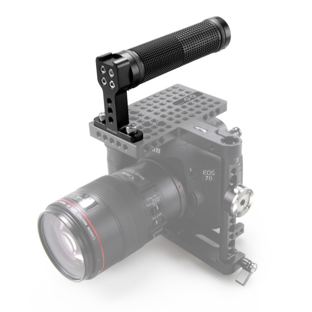 Vrchná rukoväť SmallRig (gumový čierny krúžok) 1447 sa pripevňuje priamo pomocou 2 ks 1/4" skrutiek (nastaviteľný priestor medzi dvoma 1/4" skrutkami je 30 mm - 40 mm).