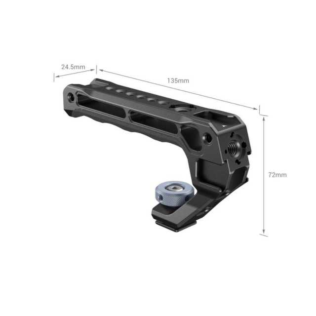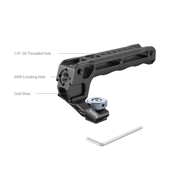 Horná rukoväť s cold shoe 3764 je navrhnutá tak, aby uľahčila záber pod nízkym uhlom a znížila zaťaženie rúk. Ergonomická rukoväť s protišmykovým a protimrazovým silikónom je pohodlná a vďaka dutej štruktúre váži len 129 g. Má 3 predné cold shoes a 2 zadné cold shoes, ktoré umožňujú súčasnú montáž mikrofónu, LED svetla, monitora a ďalšieho príslušenstva. Polohovacie otvory ARRI 3/8" -16 podporujú držiak monitora 2903, 2348 na upevnenie monitorov; otvory so závitom 1/4" -20 podporujú rameno Magic Arm 2070 na monitory a diaľkové ovládanie 2924 na nahrávanie. Allenový kľúč pomáha utiahnuť zaisťovaciu skrutku, čo uľahčuje montáž a demontáž.