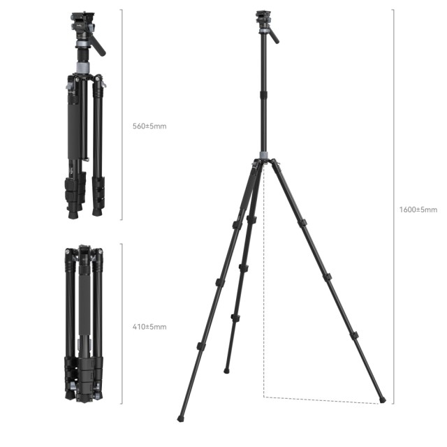 Súprava SmallRig Travel Video Tripod Kit 4221 je špeciálne navrhnutá na fotografovanie na cestách. Je vybavený reverzne sklopnými nohami z uhlíkových vlákien, ktoré sa dajú sklopiť na 41 cm, a stredovým stĺpikom na zvýšenie stability. Štvorsekčné nohy s rýchloupínacími výklopnými zámkami umožňujú nastaviť pracovnú výšku až do 160 cm v priebehu niekoľkých sekúnd a odnímateľný stredový stĺpik možno otočiť na zábery z nízkeho uhla. Rozložením jednej z nôh a jej pripojením k hlave môžete statív premeniť na monopod. Na rýchle nastavenie uhla podľa vašich potrieb je k dispozícii trojstupňový ovládač (23° / 55° / 85°). Pokiaľ ide o videohlavu 4170 na hornej strane, je vybavená integrovanou miskovou základňou, ktorá umožňuje nastavenie 10 / -10° na rýchle vyrovnanie; odnímateľnou teleskopickou rukoväťou, kompatibilnou buď na ľavej, alebo pravej strane, na jednoduchšie skladovanie a väčšiu prenosnosť; a zabudovaným kľúčom na rýchlu inštaláciu alebo demontáž fotoaparátu. Okrem toho sa dá otáčať o 360° a nakláňať o 90° / -55° na stabilné snímanie z rôznych uhlov. Okrem toho môže tento statív podporovať príslušenstvo, ako je magické rameno, prostredníctvom dvoch otvorov so závitom 1/4"-20. Váži len 1,37 kg a unesie až 4 kg, čo z neho robí dobrého spoločníka na fotografovanie v exteriéri.