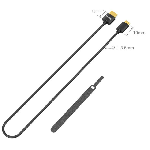 SmallRig Ultra Slim 4K HDMI kábel (D na A) 35 cm 3042 je vysokokvalitný HDMI kábel (Micro HDMI na Full HDMI) špeciálne navrhnutý pre vašu kamerovú súpravu. Ide o verziu HDMI 2.0 a podporuje rozlíšenie až do 4K@60HZ a je spätne kompatibilný. Vďaka ultratenkej konštrukcii s vonkajším priemerom 3,6 mm je tenší a mäkší ako bežný kábel HDMI. Nízkoprofilové konektory neblokujú susedné porty. Je to ideálny kábel HDMI pre vašu filmovú zostavu s dĺžkou kábla 35 cm. Priložené viazanie kábla na správu kábla pomôže urobiť vašu inštaláciu prehľadnou.