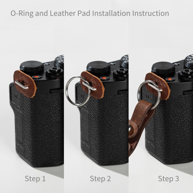 2. Jednoduchá inštalácia: koža sa na použitie prevlečie cez pútko ramenného popruhu fotoaparátu.