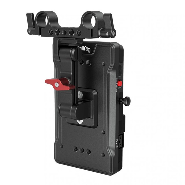 Battery plate s nastaviteľným ramenom. Doštička s uchytením IDX V Mount sa hodí pre väčšinu batérií. Vybavený výstupným portom pre 8V DC, dva výstupné porty 12V DC, výstupný port D-Tap 14,8V a výstupný port USB 5V / 2A na napájanie fotoaparátu a iného externého príslušenstva, ako je monitor, telefón atď., Taktiež je vybavený vypínačom, ktorý ovláda všetky výstupné porty na rýchlejšie a pohodlnejšie zapnutie alebo vypnutie zariadenia. Dodáva sa s dvojitou 15 mm tyčovou svorkou, ktorá pomáha pripevniť dosku k 15 mm rodom a nastaviteľným ramenom pre rýchle nastavenie polohy batérie pre montáž na V-Mount.