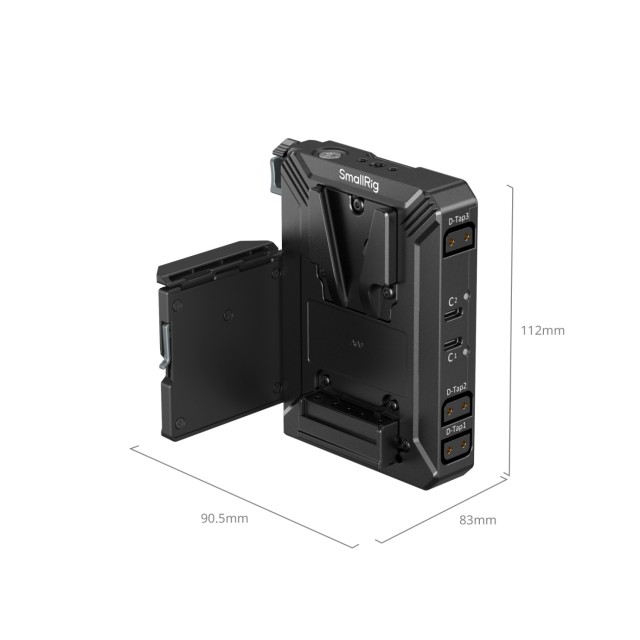 Strategicky umiestnené výstupy napájania, vrátane D-Tap a USB-C, umožňujú simultánne napájanie viacerých zariadení bez ovplyvnenia prevádzky fotoaparátu alebo hornej rukoväti. Port USB-C podporuje vstup PD až do 65 W a slúži zároveň ako nabíjačka batérií V-mount. Bezpečnostná páčka na tlačidle uvoľnenia batérie zabraňuje náhodnému odpojeniu a zabezpečuje bezpečnú prevádzku.