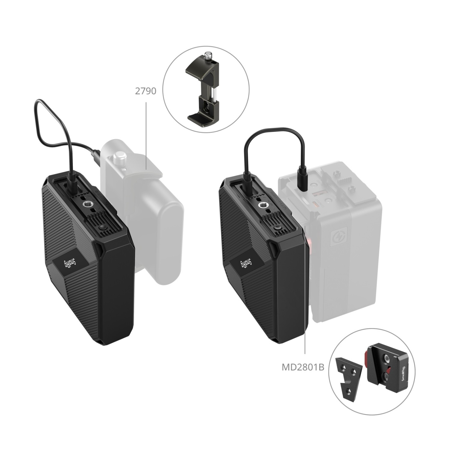 Viac otvorov so závitom 1/4"-20 (na hornej, spodnej a bočných stranách) umožňuje pripojiť príslušenstvo SmallRig, ako je držiak powerbanky (ID 2790) a mini V-lock montážna doska (ID MD2801B), čím je zabezpečený neprerušovaný prísun energie z powerbanky alebo V-mount batérií.