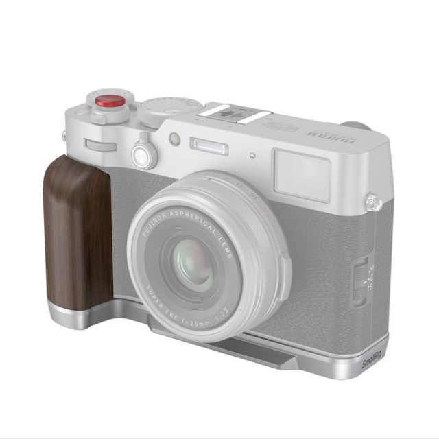 Drevený grip SmallRig v tvare písmena L pre fotoaparáty FUJIFILM X100VI/X100V (strieborný) ponúka ergonomický drevený dizajn, ktorý zvyšuje pohodlie a stabilitu pri držaní. Tento ľahký grip (77g/2,7oz) je vybavený rýchloupínacou doštičkou Arca-Swiss na jednoduchú montáž a obsahuje aj tlačidlo spúšte a kryt hot shoe s jedinečnou potlačou FUJIFILM.