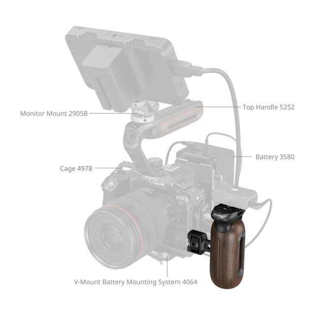 Bočná rukoväť je na hornej strane vybavená držiakom na studenú päticu pre mikrofóny alebo svetlá a polohovacím otvorom 1/4"-20 pre rôzne príslušenstvo, ako sú magické ramená a držiaky na monitor (ID 4886). Okrem toho ponúka 29 mm / 1,14 palca vertikálneho nastavenia na optimálne vyvážené ovládanie.