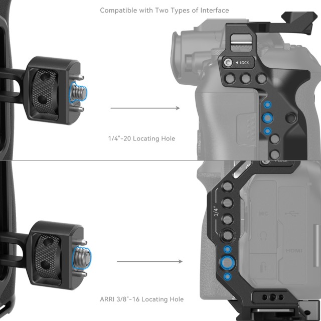 Drevená bočná rukoväť SmallRig s polohovacou skrutkou dva v jednom 5238 je navrhnutá tak, aby zvýšila stabilitu pri mobilnom snímaní, najmä pri obojručnej práci, a zároveň ponúkla všestranné možnosti rozšírenia. Jeho výsuvné rozhrania sú prispôsobené na umiestnenie polohovacích otvorov 1/4"-20 aj 3/8"-16 ARRI, čo zabezpečuje širokú kompatibilitu s rôznymi klietkami a montážnymi doskami.