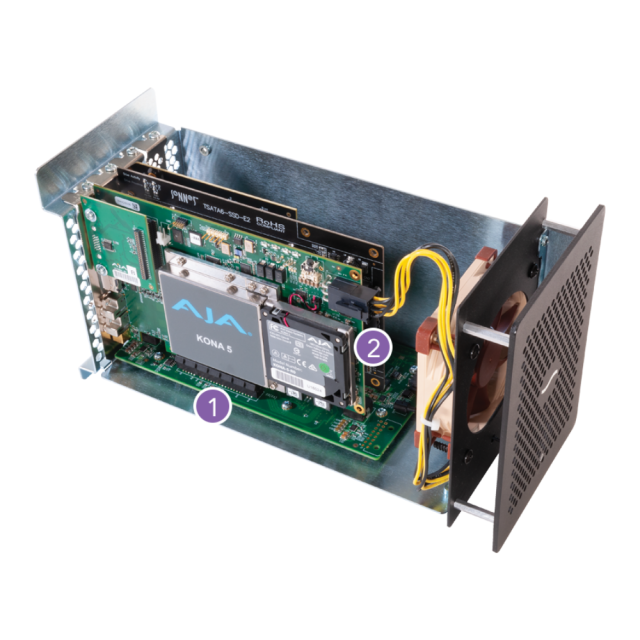 Echo Express SE IIIe obsahuje pomocný napájací konektor PCIe, ktorý vám umožní nainštalovať kartu vyžadujúcu dodatočné napájanie, napríklad AJA® Kona® 5 alebo Blackmagic DeckLink 4K Extreme 12G a karty Epoch a KRONOS SDI od spoločnosti Bluefish444.