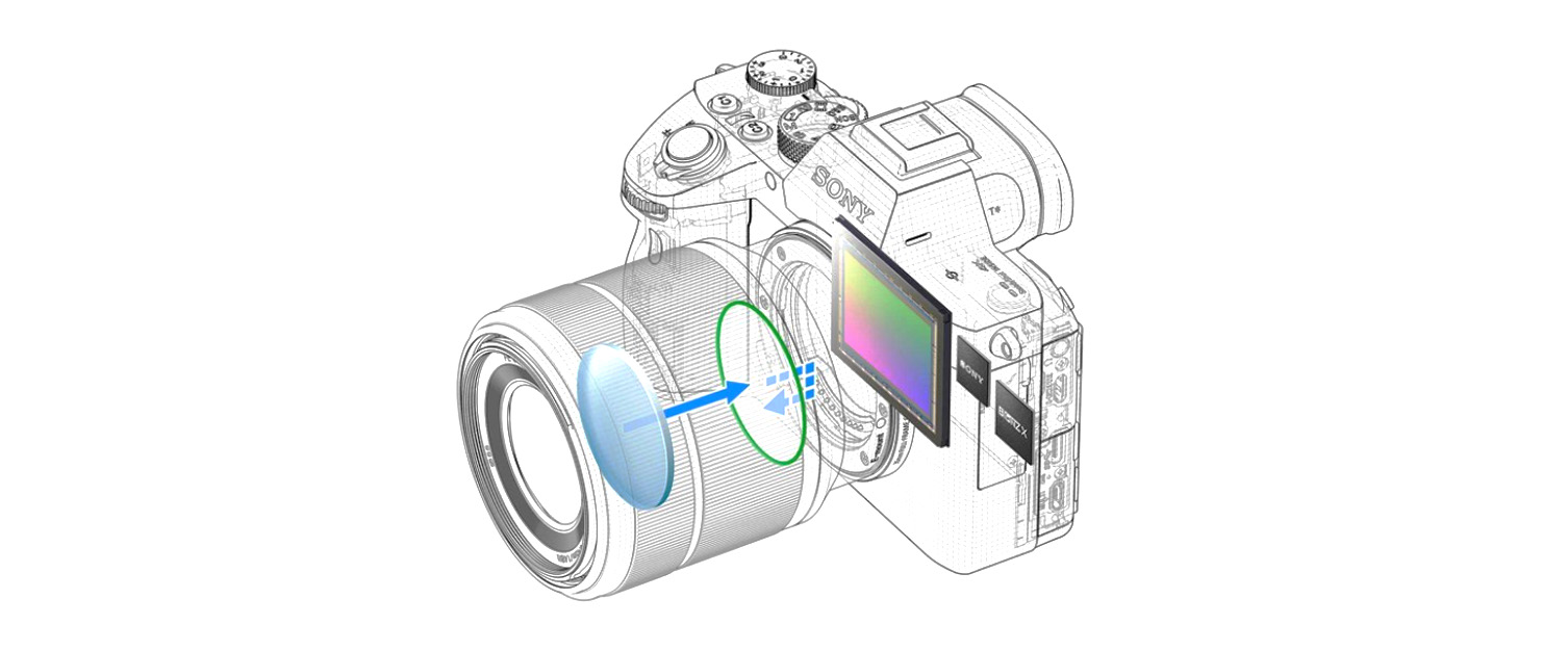 Inovovaný stabilizátor snímača je vo fotoaparáte integrovaný pomocou v piatich osiach stabilizovaného rámu do ktorého je uchytený snímač Sony Exmor R CMOS. Tento rám sa aktívne natáča, naklápa v dvoch osiach a posúva v dvoch osiach, čím účinne kompenzuje otrasy a chvenie, ktoré negatívne vplývajú na snímač fotoaparátu. Celkovo tak eliminujú až päť druhov chvení, ktoré spôsobujú rozmazanie fotografií: trasenie pri naklonení/natočení okolo osí X/Y, ktoré sa vyskytuje pri fotografovaní s dlhšími ohniskovými vzdialenosťami, chvenie v smere osí X/Y pri fotografovaní zblízka (vrátane makro fotografovania) a rotačné chvenie okolo osi Z vznikajúce pri nočných záberoch pri otáčaní. Účinnosť stabilizátora je dosiahnutá novými gyroskopmi a senzormi, ktoré v spolupráci s najnovšími algoritmami správne vyhodnotia charakter chvenia a spôsob jeho eliminácie prostredníctvom povelov pre elektromagnetické kompenzačné jednotky stabilizačnej jednotky. Účinnosť stabilizátora sa pohybuje podľa meraní CIPA na úrovni 5EV stupňov čo v praxi znamená že môžete fotografovať s expozičnými časmi dlhšími o 5 expozičných stupňov. Stabilizátor snímača Vám tak umožní naplno využiť výhody vysokého rozlíšenia snímača (42,4MPix) a to aj v situáciách keď fotíte vo veľmi slabom osvetlení ako napr. pri nočných záberoch. Stabilizátor stabilizujúci snímač obrazu umožňuje stabilizovať chvenie bez ohľadu na nasadený objektív čo je veľkou konkurenčnou výhodou.