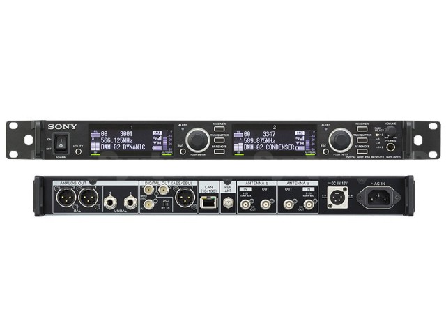 The DWR-R02D is a two-channel rack-mountable (1U-size) receiver that, as part of the DWX Series digital wireless microphone system, works seamlessly with Sony digital wireless transmitters, such as the DWT-B01/E, and digital wireless microphones, such as the DWM-02. The receiver operates with a wide bandwidth up to 72Mhz, giving users a higher probability to find unoccupied frequencies in congested metropolitan areas.