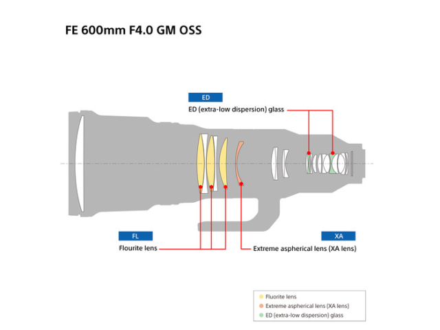 Jeho pokročilá optická konštrukcia zahŕňa tri fluoritové prvky, dva prvky ED a jeden prvok XA (extrémne asférický), ktoré poskytujú výnimočnú ostrosť, čistotu a minimálnu chromatickú aberáciu v celom zábere. Povlak Nano AR od spoločnosti Sony ďalej redukuje odlesky a duchov, čím zabezpečuje vysoký kontrast a presnosť farieb aj v náročných svetelných podmienkach. 11-lamelová kruhová clona vytvára hladké, krémové bokeh, ktoré zvýrazňuje oddelenie objektu.