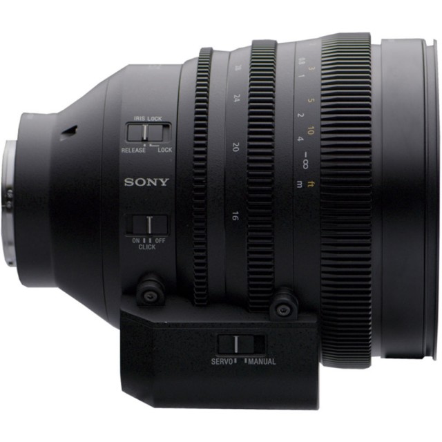 Complementing the optical assets, this lens includes an 11-blade iris to produce smooth, soft-edged bokeh with selective focus imagery. For controlling focus, you can quickly change between AF and MF with a switch. A linear response manual focus allows for responsive, lag-free control for smooth operation. The focus ring provides 120° rotation with fine control, and distance is marked in feet. The switch also features a setting for click stops so you can use tactile feel when focusing. The Enhanced Hybrid autofocus supports phase and contrast detection, and the lens also supports autoexposure as supported on a Sony Cine camera such as the PXW-FX9.