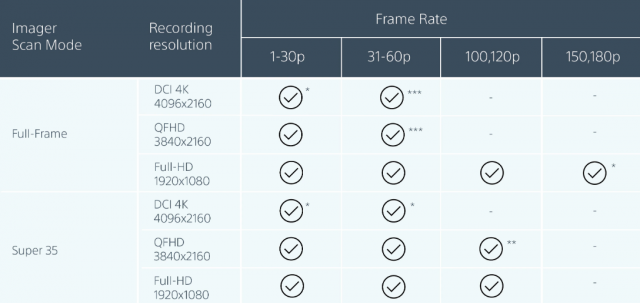Budúce aktualizácie firmvéru umožnia nahrávanie v rozlíšení HD rýchlosťou až 180 snímok za sekundu a výstup 16-bitového materiálu RAW 4K/2K rýchlosťou až 120 snímok za sekundu! Fotoaparát ponúka aj duálnu citlivosť ISO 800/4000 a farebný režim S-Cinetone prevzatý z fotoaparátu Sony VENICE pre dokonalé filmové podanie obrazu. Predáva sa ako samostatné telo alebo ako súprava s objektívom 28-135 mm f/4 G OSS