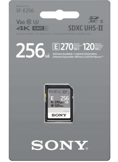 Pamäťová karta Sony SDXC SF-E 256 GB Class 10 UHS-II je určená pre tvorcov, ktorí vyžadujú rýchlosť, spoľahlivosť a úložisko s veľkou kapacitou. Vďaka pokročilej technológii UHS-II ponúka pôsobivé rýchlosti čítania až 270 MB/s a rýchlosti zápisu až 120 MB/s, čo umožňuje efektívne spracovanie fotografií s vysokým rozlíšením, sériové snímanie a nahrávanie videa v rozlíšení 4K.