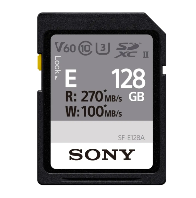 Pamäťová karta Sony SDXC SF-E 128 GB UHS-II je vysokovýkonné úložné riešenie určené pre fotografov a kameramanov. Vďaka vysokej rýchlosti čítania až 270 MB/s a rýchlosti zápisu až 100 MB/s podporuje sériové snímanie, zaznamenávanie snímok vo formáte RAW a nahrávanie videa vo vysokom rozlíšení vrátane 4K.