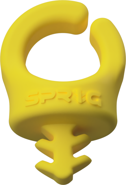 Sprig je vstrekovaný z pevného a pružného materiálu, aby sa vytvoril káblový háčik, ktorý prežije na scéne a nepraskne pod tlakom. Priemer otvoru na kábel je 0,53".
