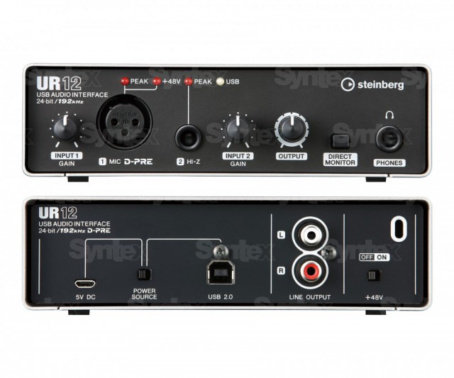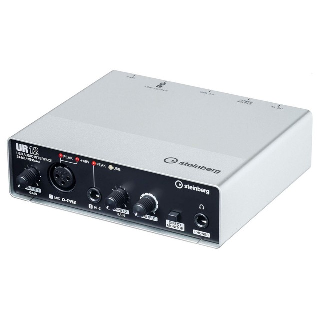 Profesionální externí zvukovka UR12 je určena především pro nezávislé umělce nebo pro mobilní nahrávání, kde i přes svou cenovou dostupnost poskytne špičkovou zvukovou kvalitu a dostačující sadu funkcí. Podporuje vzorkování s frekvencí až 192 kHz, nabízí vynikající dílenské zpracování i elektroniku a také podporu pro iPady. Na čelním panelu naleznete konektor Neutrik XLR pro připojení mikrofonu, za který je zařazen kvalitní předzesilovač Yamaha D-PRE se zapojením ve třídě A a s fantomovým napájením. Druhý kanál je realizován jako vysokoimpedanční jack pro připojení hudebních nástrojů, např. elektrických kytar. Každý kanál nabízí nezávislou změnu zisku a indikátor špiček, samozřejmostí je sluchátkový výstup, regulátor výstupní úrovně signálu, a také přepínač Direct Monitor pro bezlatenční propojení vstupů s výstupy. Zadní panel je osazen analogovými výstupy s konektory RCA/Cinch, jedním portem USB 2.0 a jedním portem mini USB pro připojení volitelného napáječe. V ceně je licence programu Cubase AI.