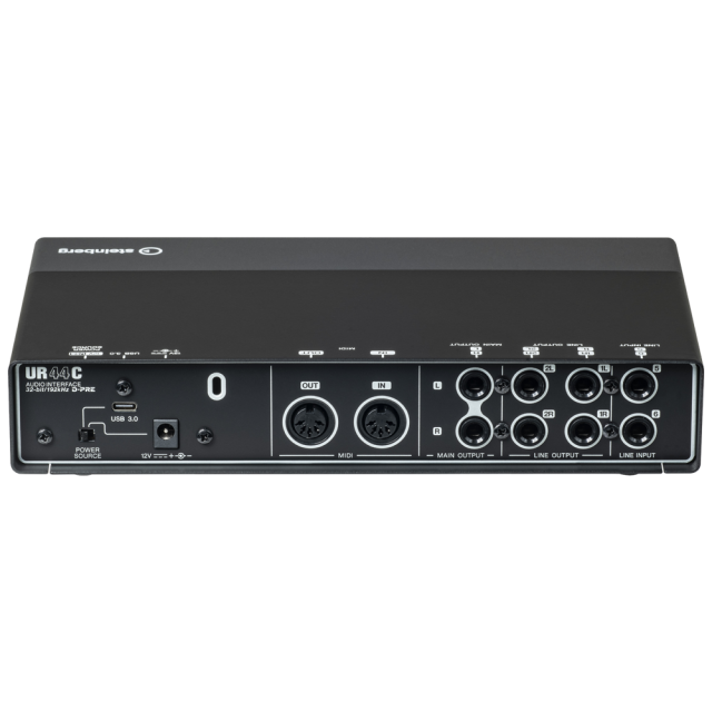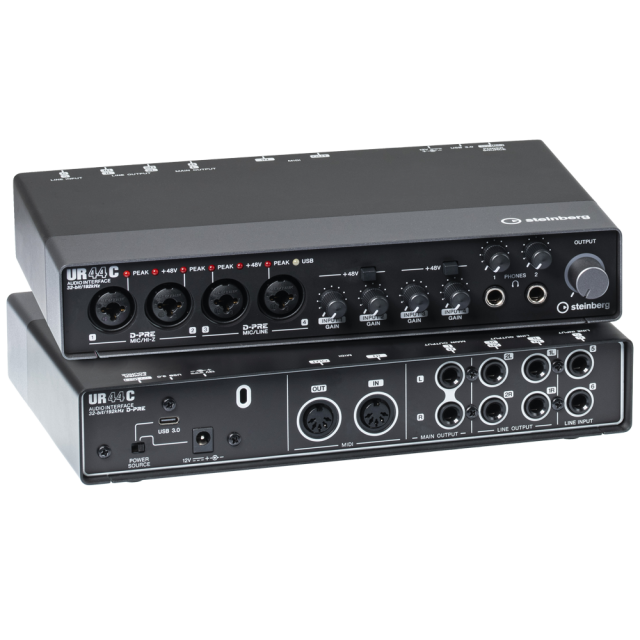 Steinberg UR44C je USB 3.0 audio interface s pripojením USB-C disponujúci šiestimi vstupmi, štyrmi výstupmi a MIDI pripojením. Spracovanie audio signálu v rozlíšení 32-bit/192kHz a hardvérový latency-free monitoring v spojení s Cubase alebo iným DAW poskytuje profesionálne záznamové možnosti.