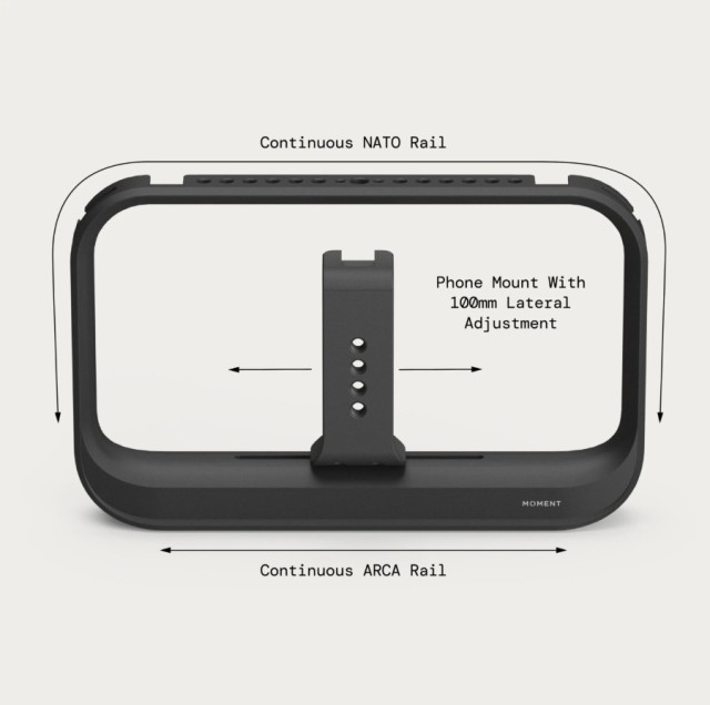Moment SuperCage je určený pre mobilných filmárov, ktorí chcú zvýšiť svoje produkčné schopnosti. Klietka je vyrobená z ľahkého, ale odolného hliníka a bezpečne drží váš smartfón pomocou nastaviteľnej svorky s ochrannými gumovými podložkami, pričom sa prispôsobí rôznym veľkostiam telefónu a rozloženiu tlačidiel. Jej otvorený koľajnicový systém obsahuje koľajnice NATO na bočných a horných stranách a základňu kompatibilnú s Arca, ktorá poskytuje široké možnosti montáže so (4) závitmi 3/8"-16, (4) držiakmi cold-shoe a (39) závitmi 1/4"-20 na pripojenie mikrofónov, svetiel, monitorov a ďalšieho príslušenstva.