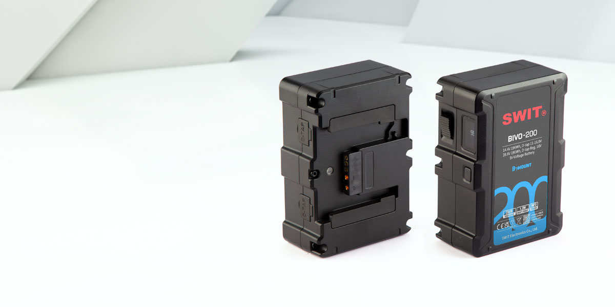 BIVO-200 je 14,4 V (10,8-16,8 V) a 28,8 V (22-33,6 V) dvojnapäťová batéria pre kamery ARRI a rôzne batérie kompatibilné s kamerami a kinematografickými zariadeniami s bežným napätím. Batéria rozpozná hodnotu ID kolíkového odporu dosky B-mount a potom vyvedie 14,4 V alebo 28,8 V bez rizika nesprávneho použitia.