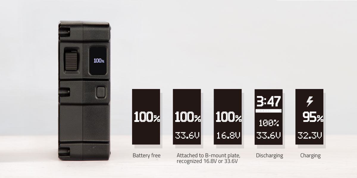 Rodina batérií BIVO série Bi-voltage B-mount má 98Wh, 160Wh, 196Wh, 290Wh, rôzne veľkosti a kapacity, na stabilizáciu ľahkých ručných zariadení alebo na výber dlhodobého napájania.