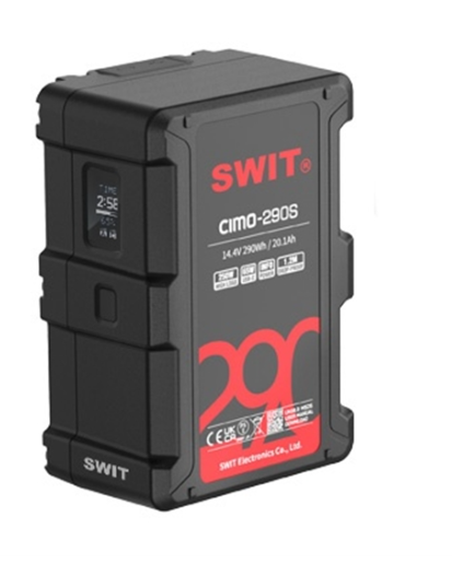 SWIT CIMO-290S je 290Wh Cine V-mount batéria s vysokým výkonom, USB-C PD nabíjaním a OLED displejom s informáciami o napájaní, navrhnutá pre profesionálnych kameramanov, ktorí potrebujú spoľahlivé a dlhotrvajúce napájanie na pľaci.