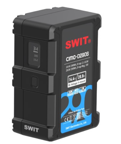 SWIT CIMO-D290S je profesionálna 290Wh dvojnapäťová batéria s konektorom V-mount a OLED displejom, ktorá podporuje výstupy 14,4 V aj 28,8 V pre vysokovýkonné filmové kamery a osvetlenie, s rýchlym nabíjaním, dvojitými výstupmi D-tap a viacerými ochrannými obvodmi.