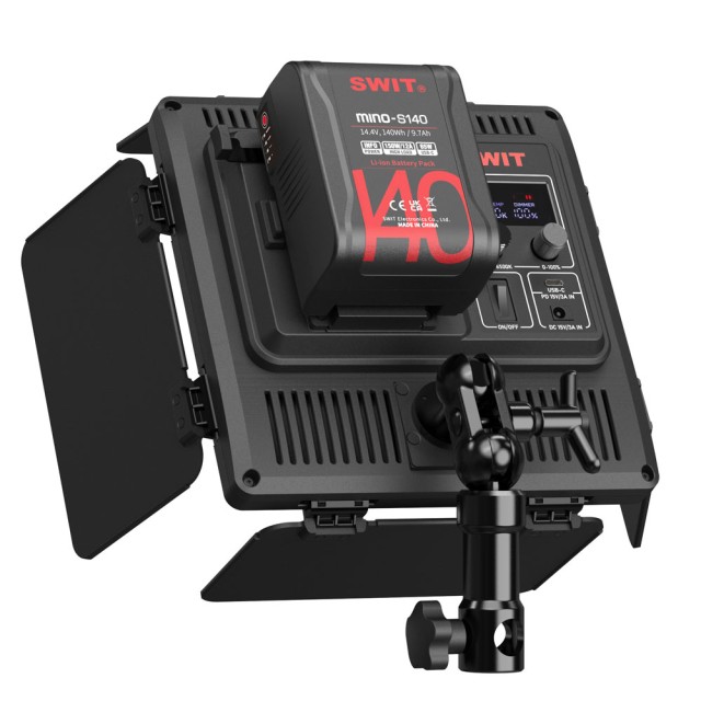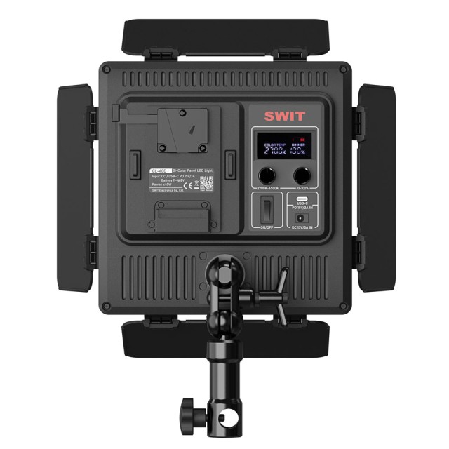 Pre pohodlné nastavenie CL-40D podporuje viacero zdrojov napájania: batériu s V-mount, USB-C a 15 V DC. Súčasťou balenia je adaptér AC-DC.