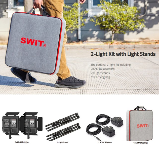 SWIT CL-40D 2KIT – 2xCL-40D s 2x 40 W vysoko svietivými, ultraprenosnými, ľahko nastaviteľnými, bezventilátorovými, dvojfarebnými panelovými svetlami a statívmi