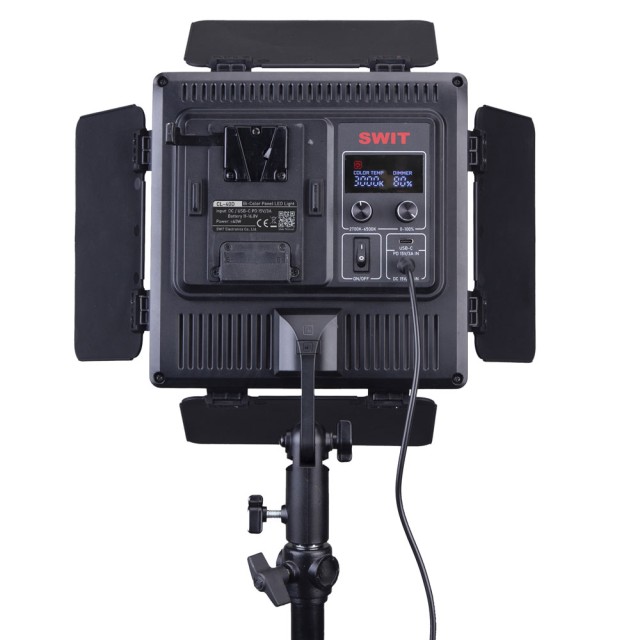 Na pohodlné nastavenie podporuje CL-40D viacero vstupov napájania pomocou batérie V-mount, USB-C a 15 V DC. Súčasťou balenia je adaptér AC-DC.