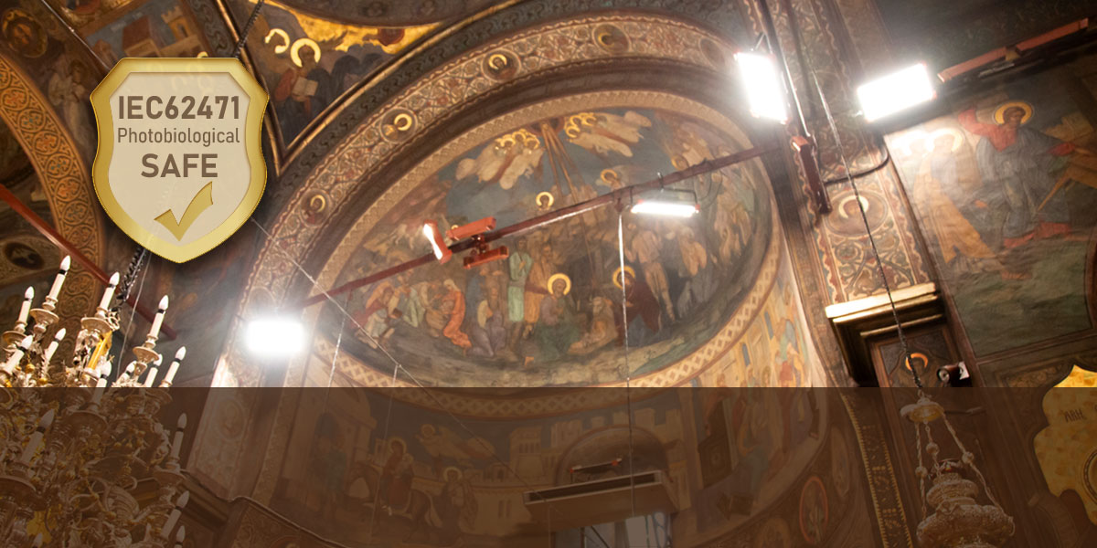 Svetlo bolo testované a certifikované ako „oslobodené od fotobiologického rizika“ podľa normy IEC 62471:2008, bez rizika ultrafialového žiarenia, vysokoenergetického modrého svetla a blikania. Na špecifických miestach, ako sú kostoly, múzeá a starobylé budovy, môže použitie tohto osvetľovacieho telesa účinne zabrániť vyblednutiu a odlupovaniu nástenných artefaktov, čím chráni kultúrne dedičstvo.