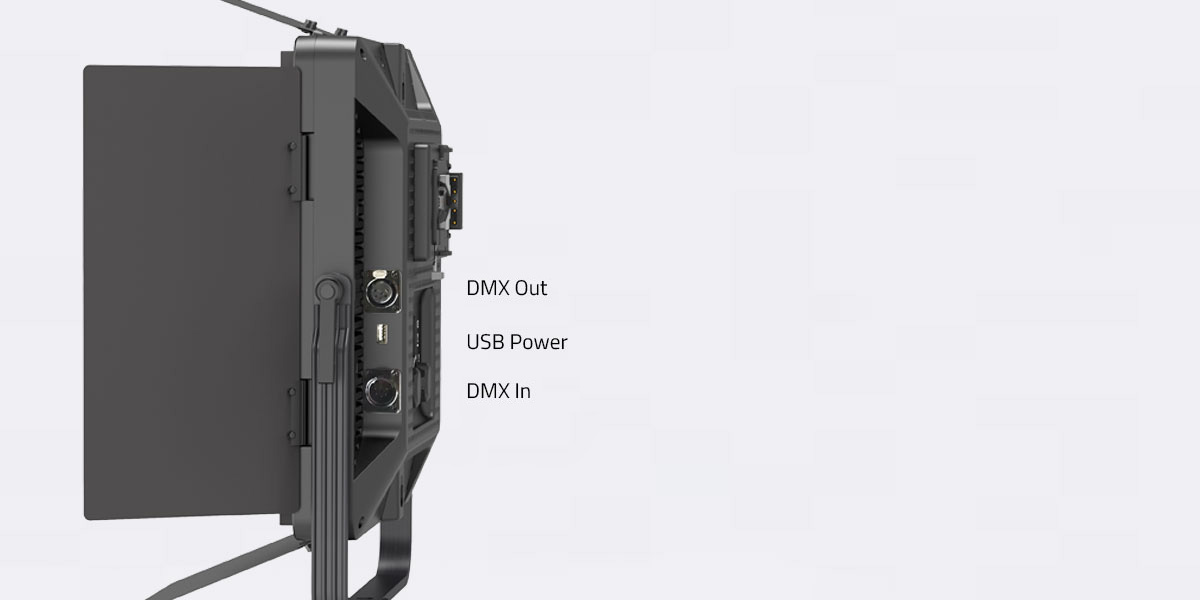 DMX adresa: N= stmievač; N+1= farebná teplota Poskytuje 5V USB výstupnú zásuvku. Môžete použiť bezdrôtový DMX ovládač SWIT LA-WR8 Pocket a napájať bezdrôtový DMX adaptér cez integrovanú USB zásuvku.