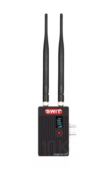 SWIT FLOW10K Tx je špičkový profesionálny bezdrôtový FHD video vysielač ponúkajúci prenos s mimoriadne veľkým dosahom až 3000 metrov. Poskytuje stabilný, odolný voči rušeniu a nízkolatentný video prenos s plnou kompatibilitou s DFS, vďaka čomu je ideálny pre náročné bezdrôtové video pracovné postupy.