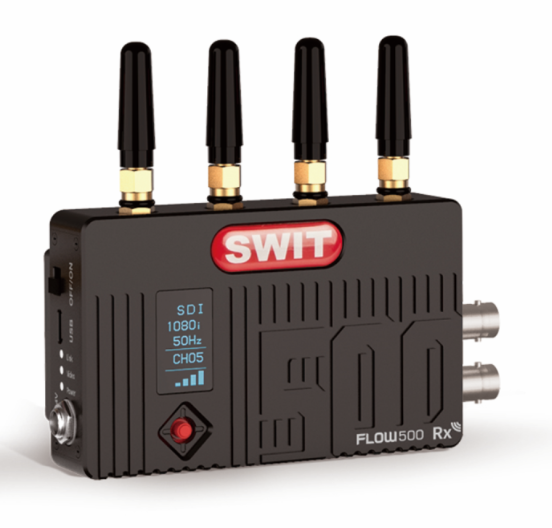 Bezdrôtový FHD video prijímač (Rx) SWIT FLOW500 je súčasťou systému FLOW500 novej generácie, ktorý je určený na profesionálne monitorovanie a diaľkový prenos videa. Využitím bezlicenčnej technológie KUWI 5,1–5,9 GHz podporuje FLOW500 prenos videa 3G/HD-SDI a HDMI (max. 1080p60) až do vzdialenosti 150 metrov v priamom výhľade, s vynikajúcou priechodnosťou stenami a minimálnou stratou signálu.