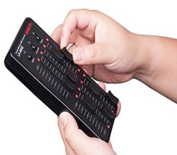 Vďaka bezdrôtovému prenosu 2,4 G systém zabezpečuje rýchle párovanie, silnú odolnosť proti rušeniu a prenosovú vzdialenosť až 400 metrov v priamom výhľade. Ovládač podporuje štandardný protokol DMX512 a disponuje 8 fadermi s 7 skupinovými prepínačmi (celkom 56 kanálov DMX), ktoré sú označené 7-farebnými skupinovými LED diódami pre ľahkú identifikáciu a synchronizáciu s prijímačmi.