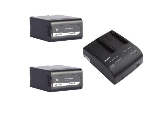 Súprava SWIT LB-SU75*2+S-3602U KIT je riešenie s dvojitým napájaním, ktoré obsahuje dve lítium-iónové batérie BP-U s kapacitou 75 Wh a dvojkanálovú nabíjačku S-3602U. Umožňuje simultánne nabíjanie dvoch batérií, je vybavená LED indikátormi nabíjania a poskytuje celkový výstup 70 W, čo ju robí ideálnou pre profesionálne DV kamery.