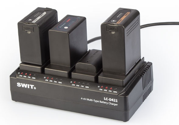 SWIT LC-D421 4-kanálová nabíjačka s batériovými platničkami typu Panasonic VBG.