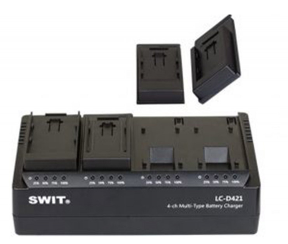 SWIT LC-D421V KIT je univerzálne 4-kanálové riešenie na nabíjanie DV batérií určené pre profesionálne pracovné postupy pri výrobe videa. Nabíjačka je dodávaná so štyrmi batériovými doskami typu JVC BN-VF a umožňuje simultánne nabíjanie až štyroch kompatibilných DV batérií, pričom poskytuje 2 A na kanál pre rýchle a efektívne nabíjanie – zvyčajne nabije štyri batérie za približne jednu hodinu (v závislosti od kapacity).