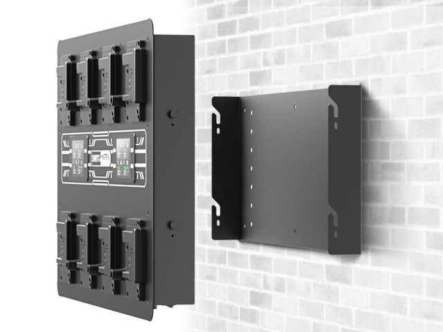 Konštrukcia nabíjačky kladie dôraz na výkon aj praktickú inštaláciu. Je vybavená montážnou doskou na stenu pre bezpečné upevnenie na vertikálny povrch, ako aj kompatibilitou s 19-palcovými držiakmi do racku, čo umožňuje flexibilnú integráciu do vysielacích alebo produkčných zariadení.