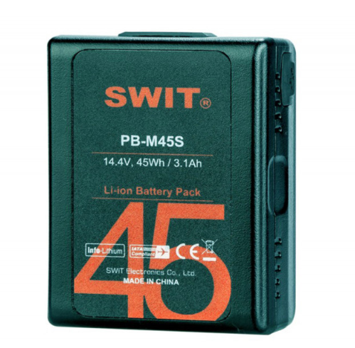 SWIT PB-M45S je kompaktná batéria s kapacitou 45 Wh vo veľkosti vrecka a konektorom V-mount, určená pre ľahké kamerové zostavy, monitory, bezdrôtové systémy a LED panely. Je kompatibilná s leteckými normami IATA a schopná dodávať konštantné zaťaženie až 150 W/12 A. Disponuje výstupmi D-tap a USB, rýchlym nabíjaním 3 A a pokročilou bezdrôtovou internou technológiou pre spoľahlivý výkon.